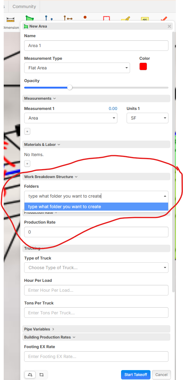 So, using the grey folders definitely helps for most things that are standardized, but I still think it would be nice to make a folder on-the-fly right in the takeoff form.