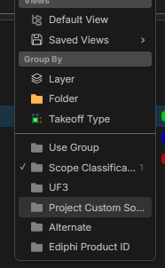 Have you tried the "grey" folders? These are setup in Custom Properties. Then you can filter your Takeoff view from there....