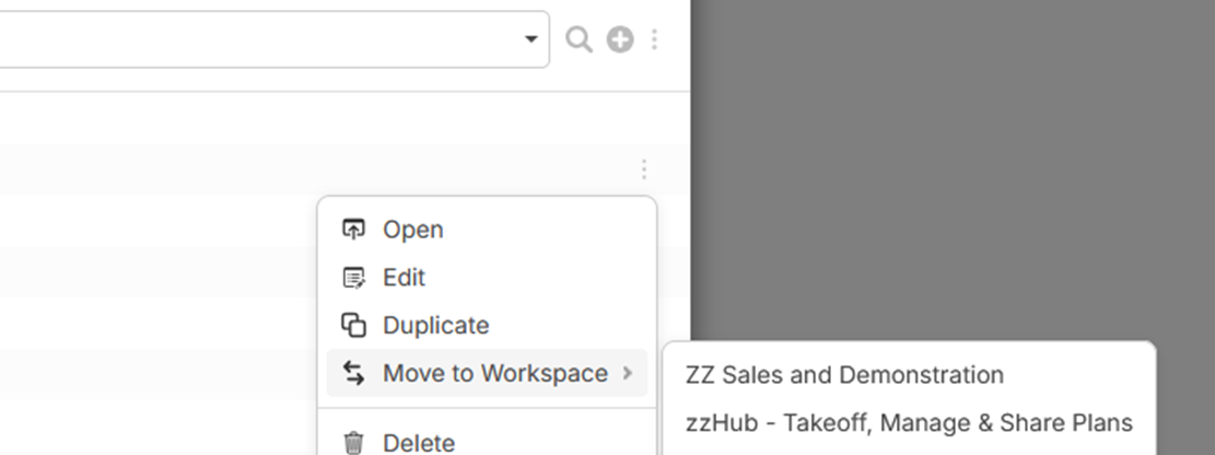 Choose the job file you want to move to the new account's workspace and over to the right of that menu will be the three dots, click the three dots,