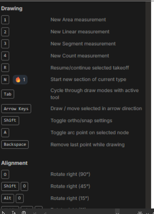 Thats right Todd, we do have a keyboard shortcut for this, thanks! I want Anthony to understand that clicking 5 points when starting a count takeoff, creates 5 sections. Stopping it and starting it and clicking one more point creates a 6th section. This creates an identical outcome as if you never stopped the takeoff at all, and works just like clicking 6 points from the start without stopping on a brand new count takeoff.