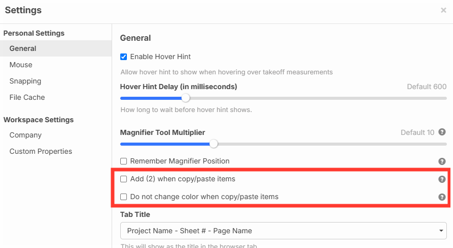 If you want this setting enabled, you can adjust it here. We also added a setting to control if it changes the color when you copy/paste takeoffs or templates.